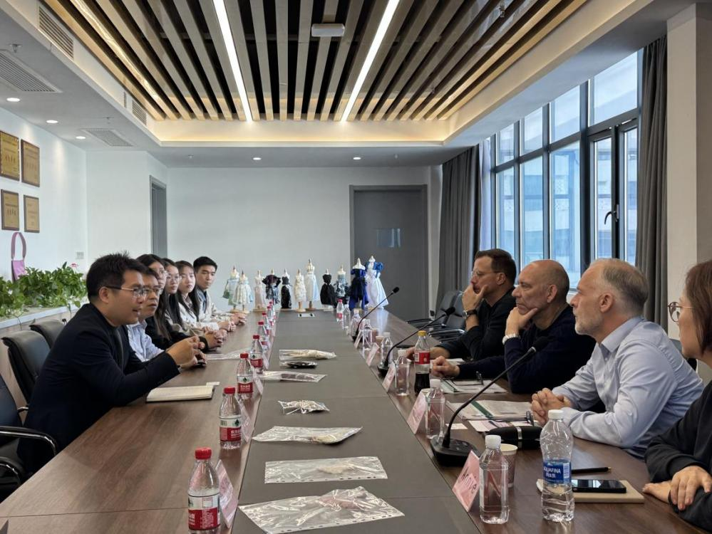 10月29日下午,德国PartyXpeople公司总裁Stephan Peterlic、Thomas Otto,荷兰PartyXpeople公司Han Van Houts,以及香港志高贸易有限公司刘雪等一行九人莅临马兰戈尼时尚设计学院(国际时装技术学院),就校企协同创新与学生设计实践拓展等议题展开交流访问。